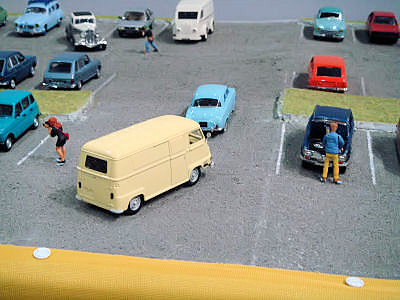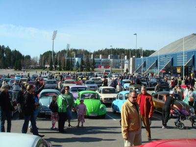 Vaikka kerho oli mukana jo edellisenä vuotena, niin ei ole mitenkään itsestään selvää, että se olisi mukana myös seuraavana vuonna (paitsi ehkä joidenkin mielestä). Tänä vuonna ilmoittautuminen meni hieman pitkäksi, mutta onneksi paikka vielä saatiin. Viime kerrasta opittiin sen verran, että tavoite oli saada mukaan sen verran vapaaehtoisia, että kenenkään ei ole pakko olla paikalla täyttä päivää kumpanakin päivänä. Onneksi vapaaehtoisia löytyi, jopa niin paljon, että joillekin joutui sanomaan, että ensi kerralla sitten. Kiitokset kaikille osallistujille ja myös niille, jotka eivät tällä kertaa päässeet mukaan. Miten sitten valitaan, mitä osastolle laitetaan? Kysymys on paljon vaikeampi kuin mitä ensin voisi ajatella. Oletteko koskaan miettineet messuilla käydessänne, että miksi pysähdytte jollekin osastolla? Toinen juttu sitten on, että miksi kerho osallistuu tähän tapahtumaan. Jos noihin osaa vastata, niin työ helpottuu huomattavasti. Ajatus oli, että lähtökohta on suurin piirtein sama kuin edellisellä kerralla, mutta jotain uutta pitää olla. Kerhon 25-vuotisjuhlavuosi antoi hyvän lähtökohdan. Se, että oliko se esillä riittävästi, on sitten jokaisen siellä käyneen arvioitavissa. Yksi asia, joka kummasti rajoittaa ideointia, on käytettävissä oleva budjetti. Nytkin oli kivoja ideoita (ainakin omasta mielestä :) jotka piti jättää pois, koska ne olisivat maksaneet liikaa. Yksi esimerkki oli kerhon nimellä painetut helium täytteiset ilmapallot. Käynti tämän vuoden Retro Mobile tapahtumassa oli hyvä opintomatka, sillä siellä tuli katseltua osastoja hieman erilaisella silmällä. Itseasiassa auton valinta sai ratkaisun, kun kävimme Atelier Renaultin näyttelyssä, jossa oli esillä Floride 50 vuotta. Jos olette katsoneet Retro-jutun kuvia (Retro Mobile 2009), niin huomasitte ehkä, että auton taustalla oli iso Brigitte Bardon kuva. Siitä syntyi ajatus, että auton takana voisi olla jonkinlainen retrotyyppinen kangas, mutta koska sopivaa sellaista ei etsimisestä huolimatta löytynyt, niin piti ottaa käyttöön suunnitelma B eli Ranskan lippu -variaatio. Senkin suhteen sopivia kankaita metsästettiin Ikeaa myöten (koska se ei saanut maksaa liikaa) mutta yllättäen paras vaihtoehto löytyi Anttilasta. Siellä oli erivärisiä lakanoita ja sattumalta samalla viikolla ne olivat jopa tarjouksessa. Toinen hyvä idea syntyi yhden kuukauden auto -jutun lukemisen jälkeen, sillä siinä oli erilaisia dioraamoja. Koska kerho täyttää 25 vuotta, niin tehdään kuvaelma ensimmäisestä "kokoontumisesta". Se oli Kannelmäen Maxin parkkipaikalla, joten ensimmäinen ajatus oli laittaa parkkipaikan taustaksi Maxin seinää ja käyttää oikein tapahtumasta otettuja valokuvia autenttisuuden luomiseksi, mutta Maxin seinä osoittautui todellisuudessa niin tylsäksi, että se ei ollut hyvä idea. Valokuvien suhteen kävi hieman huonosti, sillä wellu ei onnistunut niitä löytämään ja toisaalta miksi pilata hyvää ajatusta liialla todellisuuden toistamisella. Käytetään mielummin hieman taiteellista vapautta. Onneksi pienoismallien omistaja suhtautui ajatukseen positiivisesti ja kun Timo vielä lupautui tekemään tarvittavan kehyksen, niin saatoin itse keskittyä alustan tekemiseen. Siitä onkin ohessa muutamia tarkentavia kuvia. | |