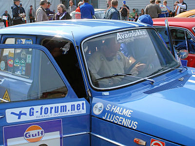 Jos haluat nähdä ja kuulla kuinka R8 Gordini lähtee lipun heilahduksen jälkeen liikkeelle, niin ohessa on 30 sekunnin pätkä videota. Ratissa Lusenius, joka on ajanut tällä autolla ennenkiin. Startti (MPG videotiedosto, koko 14.3M), |
