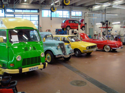 Herttoniemen korjaamohallissa oli tilaa ja sinne olikin koottu suurin määrä harrasteautoja. Hallin koko kertoo,että huoltotoimintaan on panostettu kunnolla, eikä huoltoon tulevien tarvitse jonottaa viikkotolkulla.