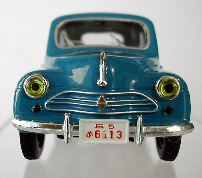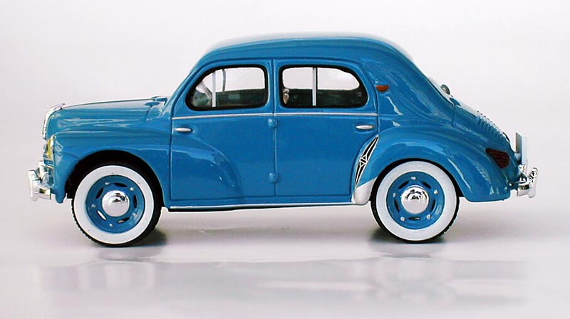 Kyseisessä pienoismallissa ehkä juuri maski erottaa auton parhaiten ranskan mallista, myös etupuskuri on isompaa mallia, mutta takapuskuri näyttää vakiolta, samoin takalasi. Tavallisesta 4CV:stähän löytyy paljon pienoismalleja, joten ikkunan muuttaminen jo olemassa olevaan muottiin olisi kaiketi nostanut mallin kustannukset turhan korkeiksi.
