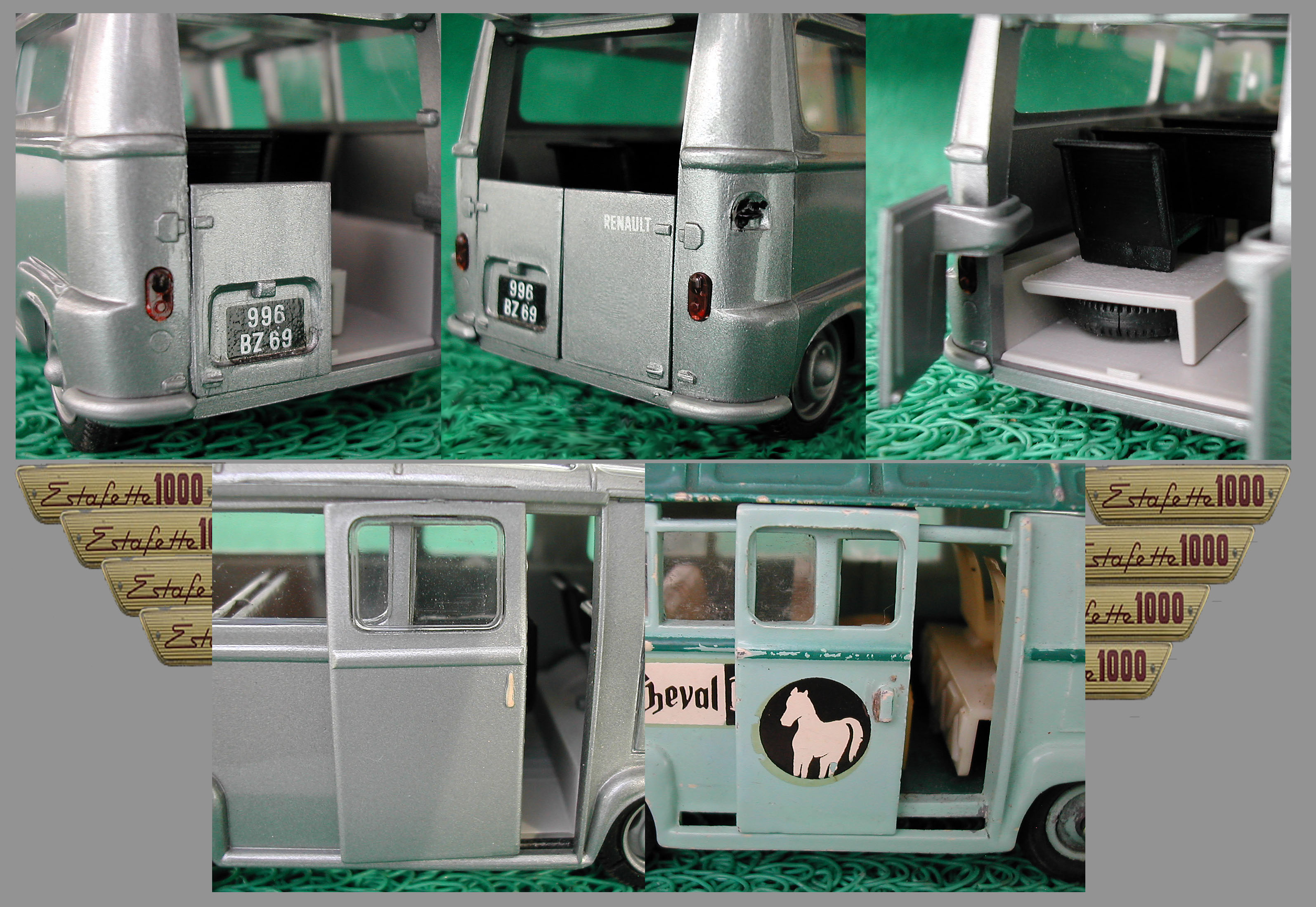 Mitään oikean auton historiikkia en tähän tarjoile, niitä on kirjoitettu asiasta paremmin tietävien toimesta aiemminkin ja juhlavuosi tuottaa varmasti muutaman lisää. Alkujaan oli tarkoitus esitellä laajan kuvakavalkadin muodossa mahdollisimman monta Estaa, mutta malleja valikoidessamme huomasimme, etteivät ne erot olleetkaan kovin suuria. Melkein koko rivi muodostui erilaisista umpimallin pakettiautoista, joissa suurimpina eroina olivat ainoastaan teippaukset. Saatavilla ei ollut matkailuautoa, ei liioin ambulanssia ja ainoa uudemman maskin omaava autokin oli hyvin pelkistetty muovimalli, joten ikkunallinen ns. pikkubussi äänestettiin valikoiman erilaisimmaksi yksilöksi. Leikkiauto ja keräilyauto Keräilyyn tarkoitetun mallin esittely oli itsestäänselvyys, mutta rinnalle otettiin myös vastaava, vanhin pienoismalli mitä hyllystä löytyi. Metallihohtoharmaa, vuosimallin 1963 auto on kokonaan kovaa muovia, valmistusvuodeksi Norev ilmoittaa 1995 ja esikuvaansa mukaillen tämä on aito ranskanpeli, eikä mikään kiinalainen juttu. Auton nokalla on mallimerkintä "800", joissain kuvissa esiintyy Estafette 1000-logo, sillä se oli ainut mitä oli saatavilla. Vihreä, jo maailmaa nähnyt metallinen leikkiauto on sekin ranskalaisen tehtaan tuote, eikä se häviä iässä paljoakaan esikuvalleen. Sen valmistaja on jo pienoismalliväelle tutuksi tullut CIJ ja valmistusvuodeksi ilmoitetaan 1961, mallimerkintää ei lue missään, joten se saa olla nyt kuvitteellinen Estafette 1000. Nuo numeromerkinnät ja niiden tarkoitus vaihtelivat todella paljon ihan lähdemateriaalista riippuen, eikä malli 1000 aina ollutkaan se kantavampi versio, joten pikkubussin teippikin saattaa olla ihan hatusta vedetty, mutta ei nyt jumiteta siihen vaan keskitytään ainoastaan pienoismalleihin. | |