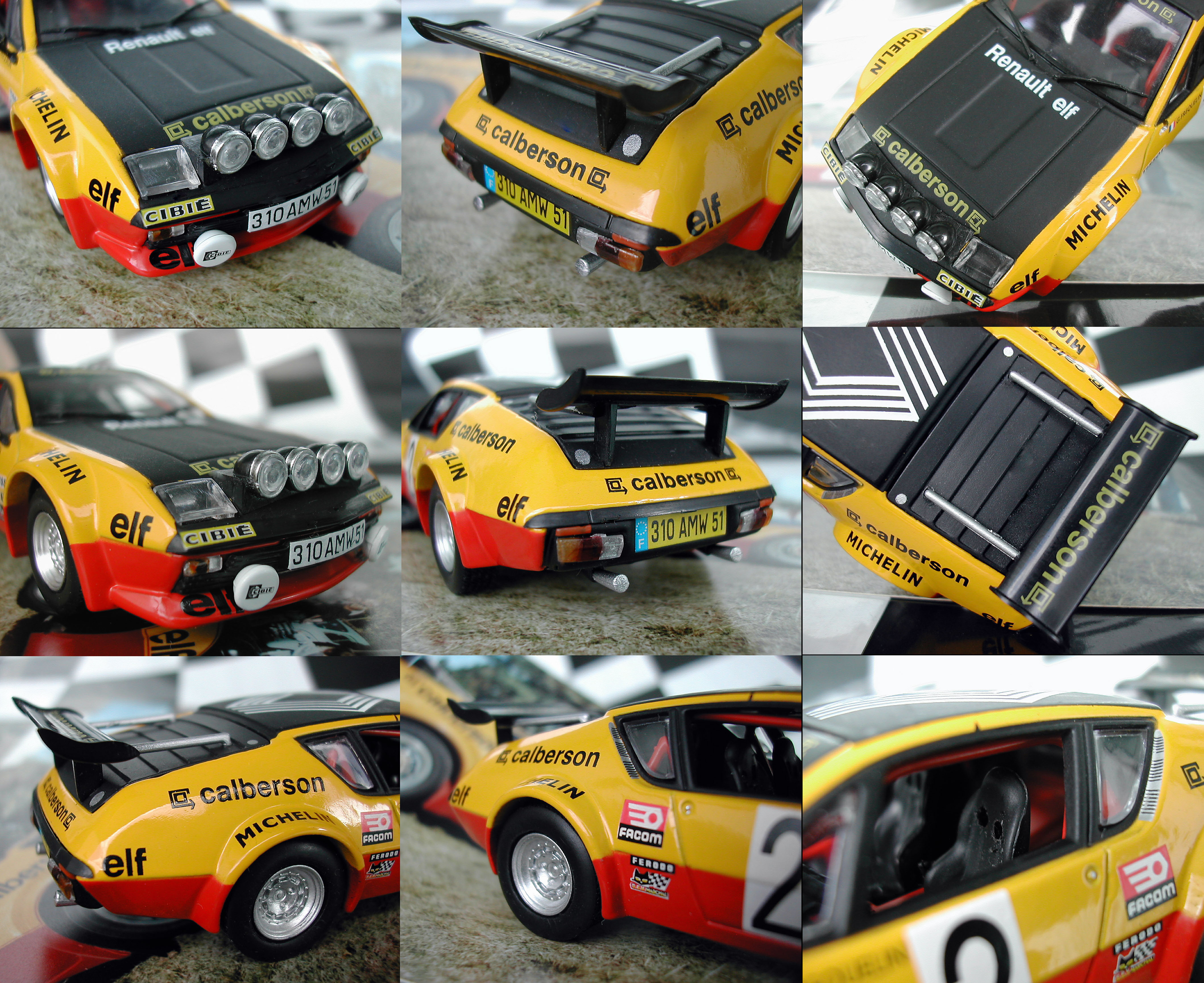 Se on ainakin varmaa, että nyt Alpine ja pienoismalli ovat samoissa väreissä ja kuukauden auto on siis pienoismalli tästä museoidusta kilpurista, ei jostain vuoden 1977 autosta, jossain nimenomaisessa kilpailussa, niin kuin yleisemmin on tapana. Väritys on eräs tuon ajan klassikoiksi muodostuneesta väriyhdistelmästä, jota käytettiin muissakin Renaulteissa ja mielestäni se sopii Alpinen jo valmiiksi kauniiseen ulkomuotoon todella hienosti. Edeltäjästään poiketen A 310 ei voittanut ainuttakaan MM-rallia, vaikka asvaltilla siihen ehkä uskottiin, auto oli luokiteltu ryhmään 4 ja eräs opukseni kertoo tehoiksi huimat 270 hevosvoimaa, moottorina se tuttu V6 ja nelosryhmässä kuutiotilavuus kasvoi tavallisesta 2664;stä 2849 cc.