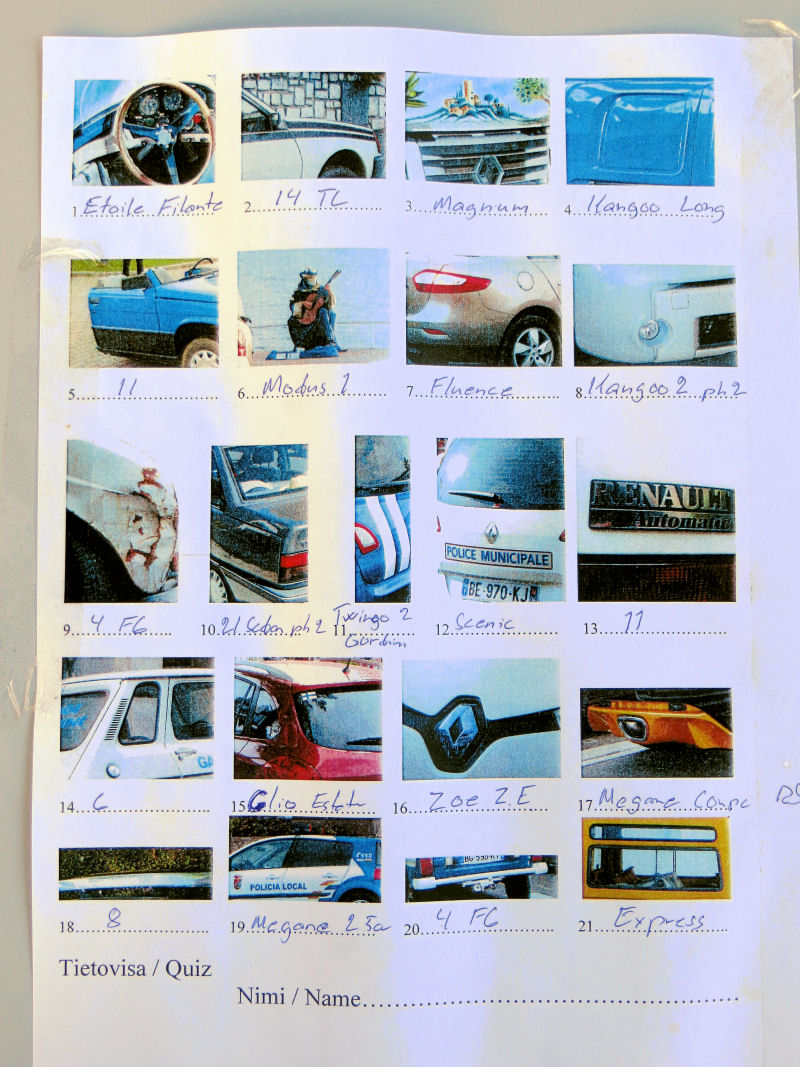 Armoitettu Renault-tietäjä täyttää tietovisaa, muutamia kuvia pidetiin hieman haastavana.