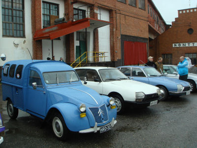 Ranskalainen visiitti järjestettiin tänä vuonna Akaan Viialassa Automobile Club Panhard Dynastia de Finlanden toimesta. Paikkana oli entinen vaneritehdas, jossa Panhard kerholla on omat tilat. Tehdas miljöö oli upea vaikka sää ei oikein suosinut. Vettä tihutti ja ilman henki oli suorastaan kylmä. Onneksi käytettävissä oli sisätila, jossa saattoi olla suojassa.
