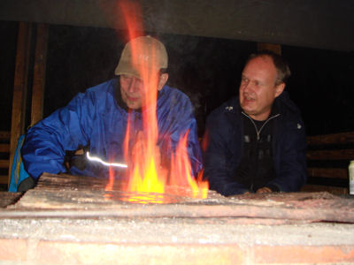 Iltaohjelmaan kuului myös makkaran paistoa.